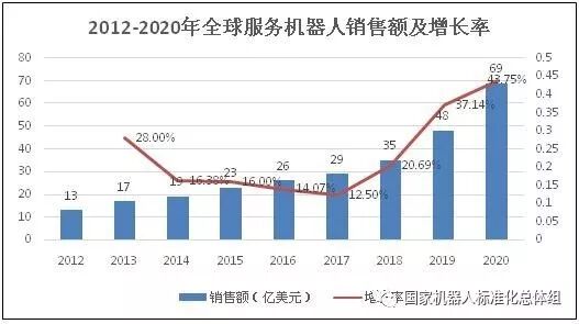 图3个全球服务机器人销售额及增长率(2012-2020年)