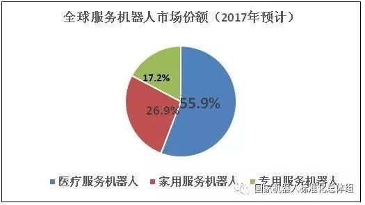 图2全球服务机器人市场份额(2017年预计)